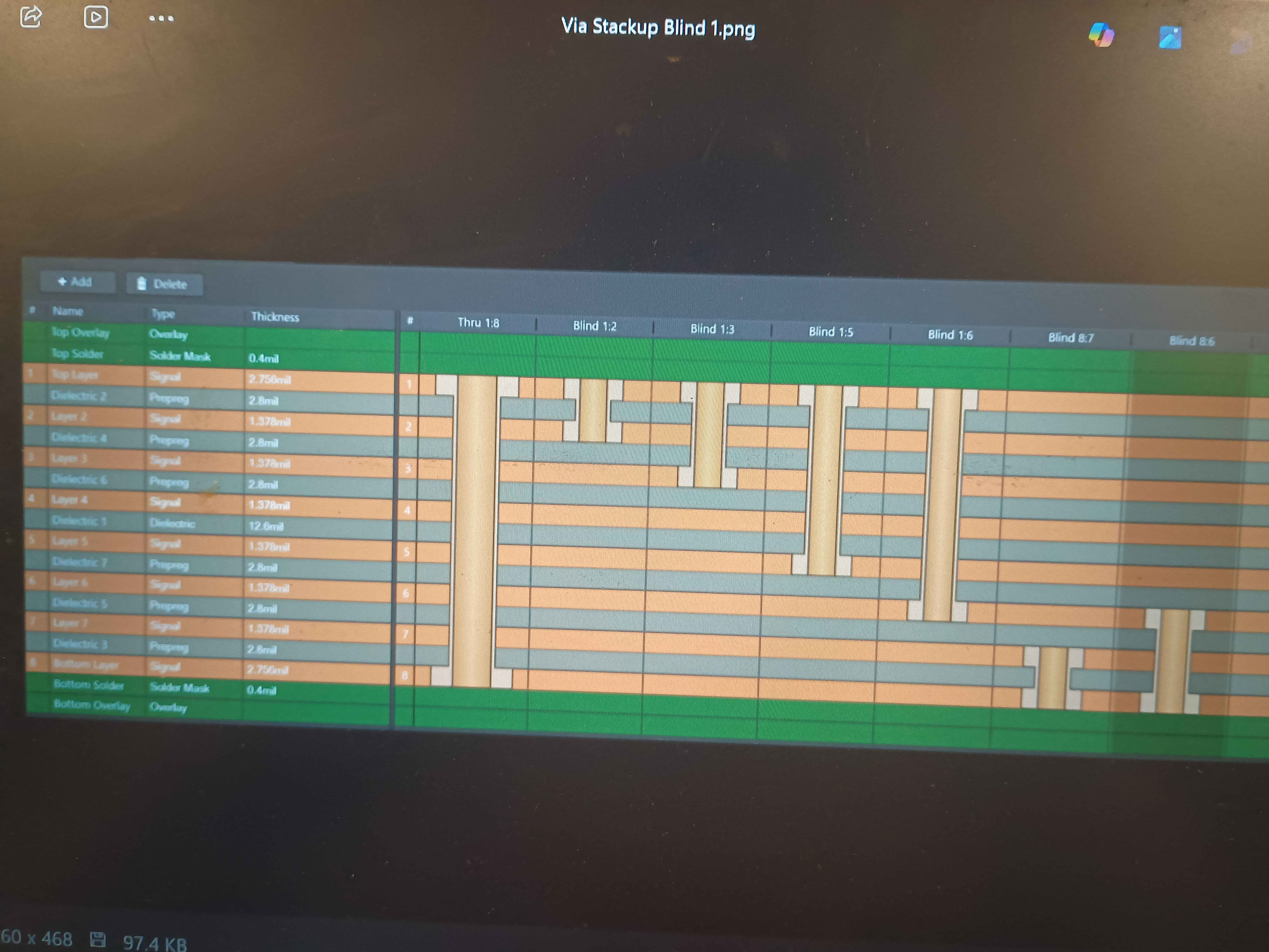 No, blind vias can be multiple layers. Even L1 to L6.But you are stacking layers.So you can take core for L2+L3 (B1), L4+L5 (B2) and L7+L8 (B3). Etched all but L8.Then: copper + prepreg + B1 + prepreg + B2 + prepreg + copperPress, drill and plate.Etch L6, but not L1Take the board L1-L6 + prepreg + B3Press, drill and plateEtch L1 and L8.A "reverse build-up".